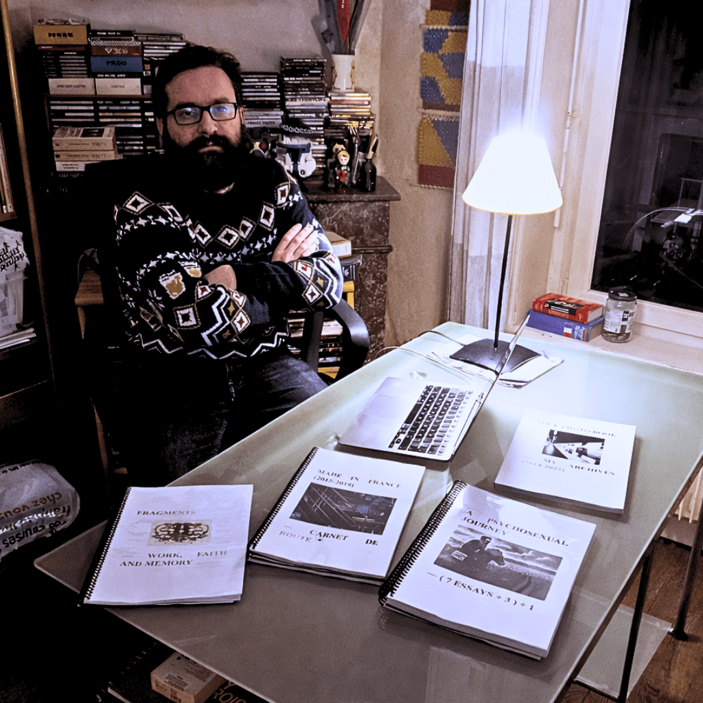 Je publie en français et en anglais, principalement sous forme de recueils thématiques, diffusés librement en PDF. Entre 2024 et 2025, j’ai publié neuf recueils, totalisant plus de 1348 pages d’essais, de récits graphiques et de travaux photographiques.