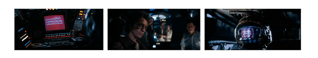 An interesting dynamic occurs from the start to finish. At the beginning, the world is masculine : sophisticated computers, spaceships, machinery, industrial tools, Dallas as the male leader of the group… All things associated with engineering and generally masculine themes. Then, a subtle shift occurs in the movie when the team dispatched to the derelict ship return to the Nostromo. While unknown immediately to the viewer, Ash is a neutral figure : an android, despite his male appearance. He is the one taking the lead. And later on, when everyone die s— Dallas too — Ellen Ripley takes the lead until the final scenes.