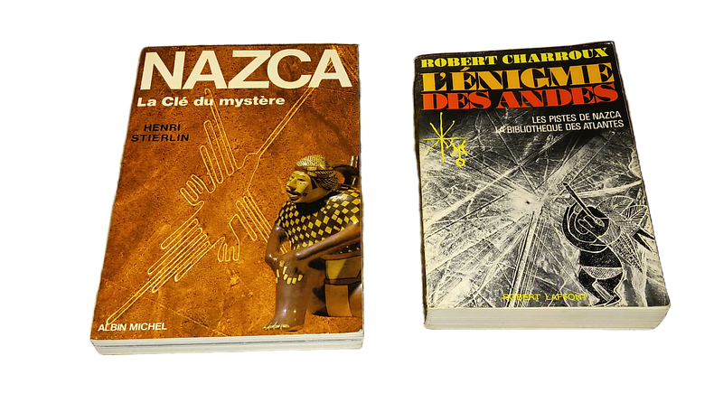 Nasca Lines are interesting regarding how the topic was treated in literature. The French book “L’Enigme des Andes” (Robert Charroux, 1974) was made during the “UFO mania” of the 1970s : Ancient Astronauts theories and a lot of pictures regarding the Ica stones. The latters were forged to attract tourists and scientists : they depicted modern-like technologies and dinosaurs as if these stones were made in ancient times. On the contrary, the book “Nasca : la Clé du Mystère” — written in 1983 by Henri Stierlin — was a serious attempt made to understand the long mystery surrounding the Nasca lines.