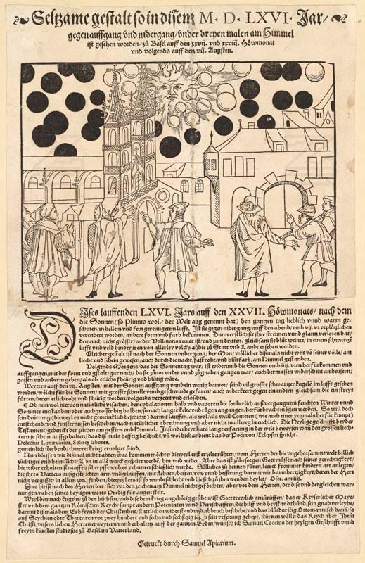 In the past, many phenomena (now considered as optical or climatic ones) were recorded in the past. A well-known example is the “UFO battle” over Nuremberg in 1561. It was turned into an engraving within a local prospectus named “Flugblatt”.