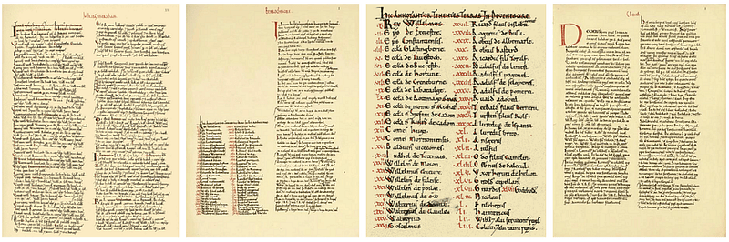 It is considered the earliest surviving state record in England; invaluable for economic, social, and administrative history. Not literary in intent but an emblematic text of administrative writing and royal authority. This would be the sole large-scale survey in country history for centuries before the “Return of Owners Land” in 1873. Several paper editions are published to discover in plain English the “Domesday Book”. My favorite one is “The Domesday Book: England’s Heritage, Then & Now” :