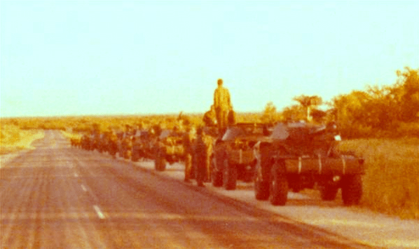 South African Defense Forced launched Operation Askari in Angola in 1983 — here is a convoy of Eland armored cars