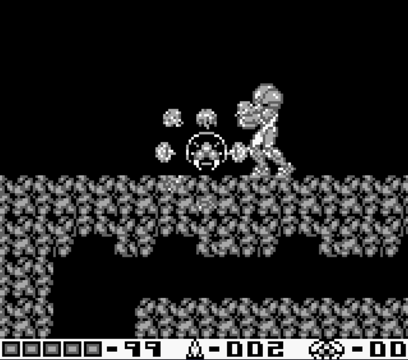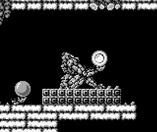 The player will notice several improvements over the original Metroid : more firing options (you can shoot up and down, while walking or jumping), better controls (better jump physics, you can kneel…), impressive sprites for a Game Boy game, great variety of structures and enemies… This is clearly, on the technical part, a great sequel and improvement from the first Metroid, where Samus was some sort of an “alien” sprite, with clunky physics and few movement options.