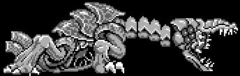 With the metroid-counter dwindling, you walk through emptier and emptier corridors/caves until entering the latter section. At this point, the music tone is extremely dark and creates a sense of dread. All the small creatures have vanished. You are alone exploring a creepy zone with no small enemies and barely one save station. The texture is quite weird, reminding the “bubble and sticky like” texture of the Alien nests in the eponymous franchise with some watery matters : something impressive for a GameBoy game. No energy/missiles re-filling balls too like in previous. The area is in fact only populated with the most dangerous Metroids : Omega ones. You have 3 of them. Once you have killed them, you can progress toward the end section of the game. This is a long section with no enemies and only sticky watery matter in some parts. After this long walk, you finally enter a gigantic empty cave filled with weird and harmless insectoid-like creatures. While climbing the gigantic cave, you find several textures reminiscent of the previous complex structures left by the Chozo earlier in the game. You have three shafts. The first one gives you access to both missiles and energy refilling stations. The third one allows you to pursue the final part. The second one, in between the two others, is perhaps the most chilling : you find a broken Chozo statue with the head decapitated and an arm on the ground holding a power-up ball. This is also a great example of story-telling : whatever is ahead, it was enough (and willing) to tear off this statue.