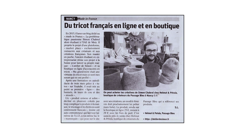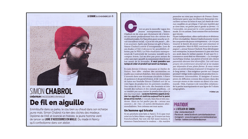 I was lucky to be interviewed by local journalists about my business during this period. Here is an interview for the local newspaper “La Semaine” (“The Week”). The journalist was a woman. She was surprised to meet a “knitter-man”. The discussion was gentle, the website address was even inserted in the newspaper, and also my social links.