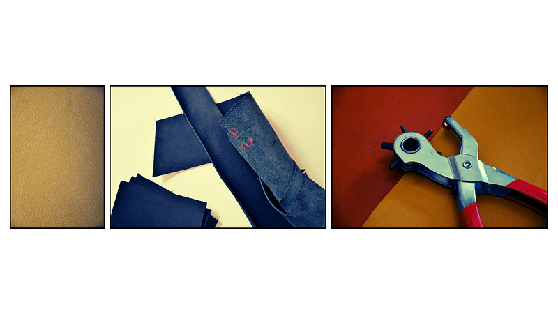 Pendant cette période, je me suis également beaucoup intéressé aux articles en cuir. Voici quelques exemples de cuirs que j’ai achetés, la plupart étant de « deuxième choix » en raison de contraintes financières. Mon préféré était le cuir noir « épais » au milieu.