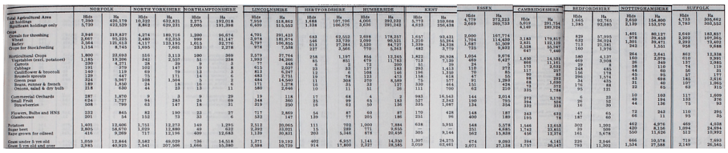 Something that shows few differences with the past, at least since the early 1900s. A bit like if both the soil, farmers (even if diminished) and crops were telling us a story of persistence; whatever occurred around them. These 2023 statistics from the DEFRA regarding farming types in the three most productive regions regarding cereals (East Midlands, East of England and South East) are telling :