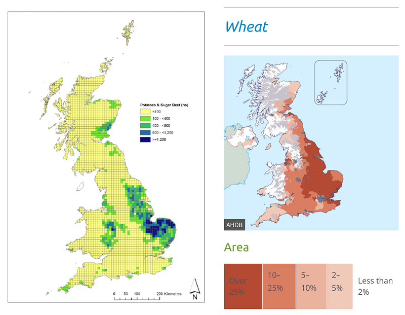 And also two maps regarding where two major agricultural crops are planted and/or harvested (wheat and potatoes) :