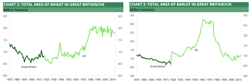 These agricultural statistics from the House of Commons Library (Number 3339, 25 June 2019) are telling with the clear collapse of the wheat and barley surfaces from late 1800s to early 1900s :
