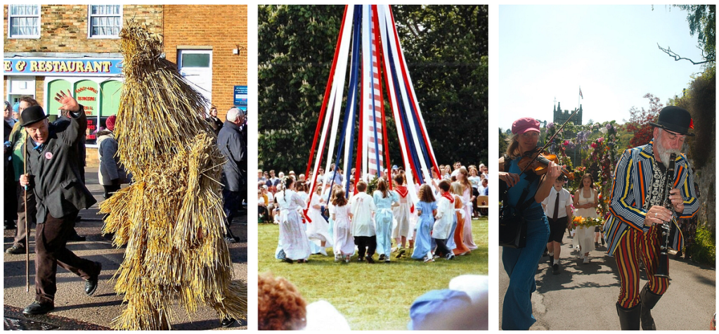 Life in the countryside was transformed too. Several traditional celebrations were either forgotten over time, or far less practiced like Wassailing — a winter orchard-blessing custom — Lammas Day — feast of the first wheat harvest — but some of them survived till today. The Plough Monday dates back to the 15th century and is celebrated at the beginning of January. It symbolises the start of the agricultural year. It was common to drag a plough around and collect money. May Day is a very old festival associated with spring celebration. It’s well known for the custom of children dancing around a pole (called the “maypole”). Here are some pictures illustrating these two festivals :