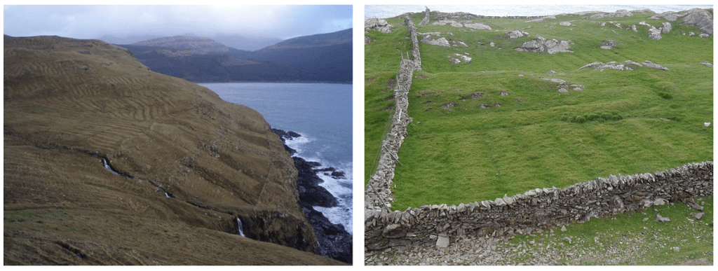 The agricultural landscape of the United Kingdom was transformed. Many things are now considered as being part of the past. We can mention the “foot-plough” in Scotland for example (rather than using a horse/oxen pulled plough, it was done by using a long stick called a “cas chrom”, something required because the soil is of poor quality and rocky in some parts of the Scotland) or several agricultural practices like the “run rigs” and “lazy beds”, which had left a distinctive mark in the agricultural landscape :