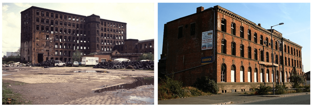 Regarding the wool industry discussed earlier and deeply tied to the enclosures, it’s important to discuss the history of the wool industry in the United Kingdom. In early times, in Europe, historical textiles production areas were located in the Flanders region and Bruges, Ghent and Ypres cities (modern Belgium and France). The area is closely located to the modern United Kingdom, and it naturally led to exports of British wool to the continent. The trade was so crucial and profitable that in the 14th century, it was turned into an object to symbolize it : the “Woolsack”. A large red seat filled with British wool. Wool became a major source of tax revenue for centuries in what is now the modern United Kingdom. Something of an oddity today : when the wool industry faced difficulties, it was even made mandatory by the Caps Act in 1571 (except for nobility) to wear a woolen cap on Sundays and holidays. Wool industry prosperity peaked during the Industrial Revolution especially in Leeds region, but progressively disappeared in the following decades with increasing imports from the Far East. These abandoned mills in Leeds (some demolished now) are the last remains of this glorious industrial past :