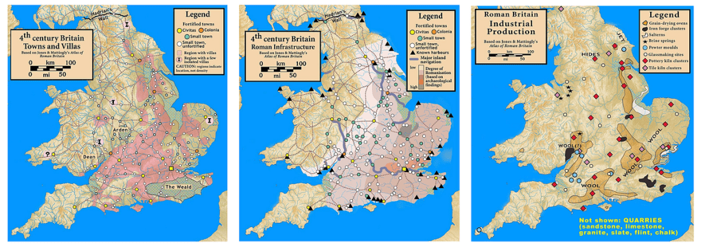 When we look at maps of Roman occupation of England, what emerges is the strong emphasis put on an area from modern East of England to modern Cornwall. Something mimicking the sometimes controversial — when it involves stereotypes and disrespect of course, not when it comes to understand agricultural, economical and political differences in the country — North-South divide line in modern United Kingdom :
