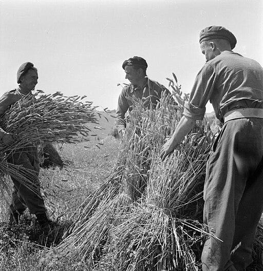 And some pictures of soldiers assisting British farmers in the 1940s during harvests (Ministry of Information Photo Division Photographer, Public domain, via Wikimedia Commons) :