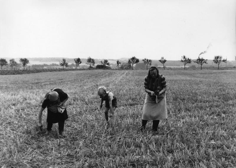 Gleaning — the act of collecting abandoned, “lost”, fruits unfit for selling and grains not harvested in the fields — was normally part of the agricultural culture and society in the past. It was done to ensure that the poorest could afford some food for themselves. This right is as old as the Hebrew Bible — the topic is discussed in the Leviticus — and was asserted through laws in several countries.