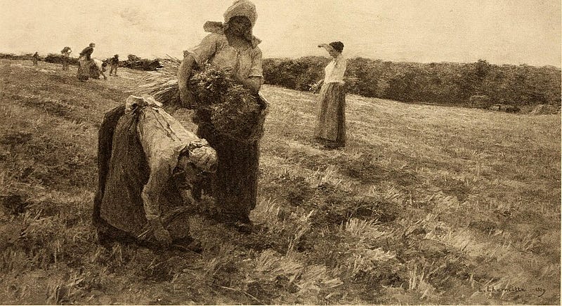 “Those who, without other circumstances, have gleaned, raked or picked in fields not yet entirely stripped and emptied of their crops, or before sunrise or after sunset”— Article R26 from the Old French Penal Code