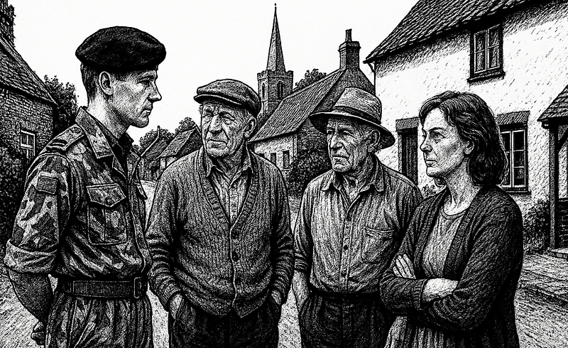 Comme tout le monde dans le Suffolk, j’étais désespéré et désemparé en mars 1985. Le programme « travail contre nourriture » avait été supprimé. Nous ne savions pas si du carburant allait être fourni entre-temps. Comme les autres agriculteurs, je devais gérer et calmer les réfugiés urbains désespérés qui s’étaient installés à la campagne. C’était extrêmement difficile : ces personnes traumatisées devaient être formées à des tâches agricoles et urgentes. Nous avons fait de notre mieux. Mais je n’étais pas seul, grâce à ma femme. Sans elle, le fardeau aurait été trop lourd à porter. Nous avons finalement réussi à semer en 1984, mais des moissonneuses-batteuses ont été demandées pour juin 1985. Ce qui s’est passé était inattendu : les soldats se sont joints à nous, compte tenu de l’absence totale d’instructions de la part du CGWHQ (quartier général central du gouvernement en temps de guerre). Ils étaient eux aussi désespérés, mais capables de se coordonner avec d’autres régions grâce à leur propre hiérarchie. Ce fut un processus douloureux, marqué par des émeutes alimentaires, la famine et la violence, mais la récolte a été sauvée grâce à l’aide de tous (enfants, femmes, quelques personnes âgées aussi…).