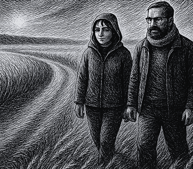 Je suis né en 1982, mon frère un peu plus tard. Nous étions trop jeunes pour nous en souvenir. Nos parents nous ont dit que l’Écosse avait été relativement épargnée, à l’exception de quelques bases militaires, Édimbourg et Glasgow ; peu de choses avaient été détruites. Nos parents nous ont expliqué que nous avions eu de la chance grâce aux céréales : l’Écosse est réputée pour son orge. Les céréales étaient vitales après l’attaque nucléaire, et l’Écosse faisait partie d’un plan national visant à sauver le système agricole. Notre sort était meilleur que celui de plusieurs régions de l’ouest de l’Angleterre. Une nuit, j’ai entendu mes parents parler à voix basse dans leur chambre des événements qui se déroulaient dans le comté de Cumbria : violence, effondrement total de l’ordre public, voire rumeurs de cannibalisme — un mot que je n’ai pas compris pendant longtemps, jusqu’à ce que je trouve un dictionnaire. Ma mère pleurait, tandis que mon père lui parlait doucement. Nous sommes trop jeunes pour travailler, nous errons devant la mer du Nord lorsque nos parents ne sont pas à la maison.