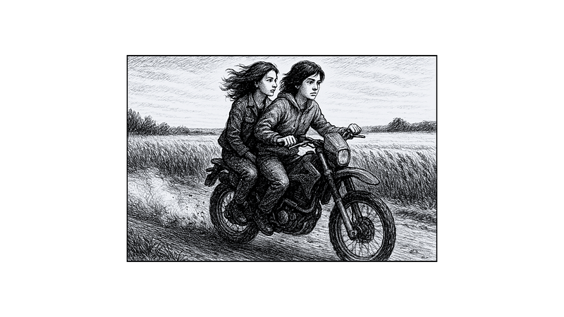 Moi et mon amie Betty sur une moto tout-terrain à la campagne. Avec le recul, c’était probablement une sorte de relation affective. Nous étions très proches l’une de l’autre. J’étais heureuse quand elle m’enlaçait sur la moto. Les autres jours, nous passions d’innombrables heures à discuter dans sa chambre avec la musique de Pink Floyd en fond sonore.
