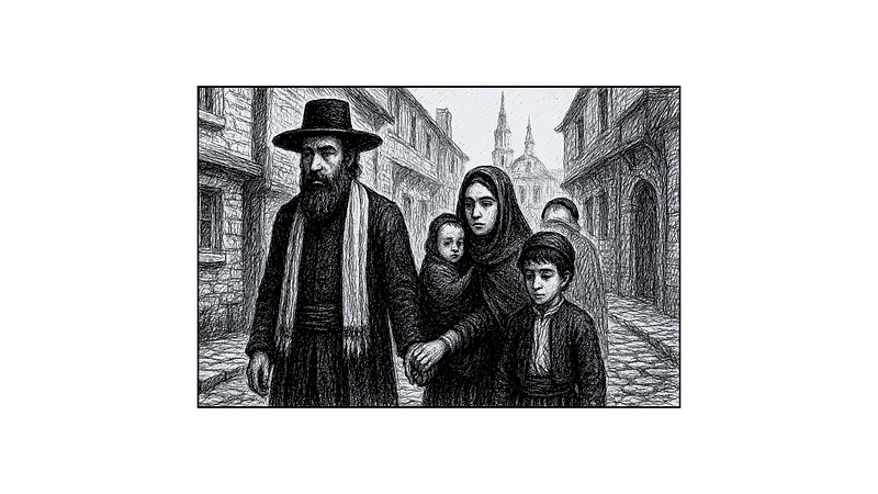 J’ai rencontré cette famille juive dans la rue. Ils semblent suffisamment confiants pour se promener librement dans les rues vêtus de leurs habits traditionnels. Les gens ne leur prêtent guère attention. J’ai appris après une discussion que les Juifs étaient à nouveau autorisés à vivre en Angleterre cette année, après leur expulsion en 1290. La dernière expulsion des Juifs du royaume de France remonte à 1394. Mais cette règle ne s’appliquait qu’au domaine royal. Plusieurs abrogations ont eu lieu dans les années suivantes.