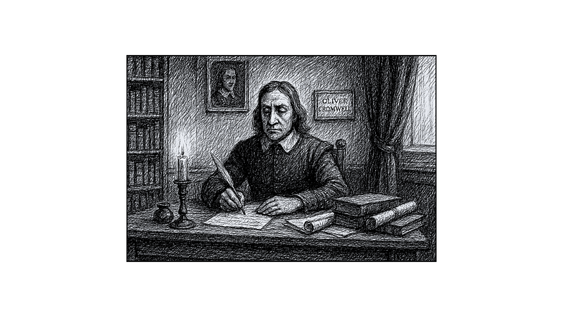 Après ce long voyage, les côtes anglaises sont enfin visibles. J’ai été chargé de transmettre une lettre confidentielle au Lord Protecteur du Protectorat, Oliver Cromwell. La monarchie a été abolie il y a quelques années après une longue guerre civile, un événement qui a marqué ce pays et le reste du monde. Bien que je ne sois pas un homme politique, le pays semble extrêmement austère d’après ce que j’ai entendu : un régime militaire dirigé par des personnes religieuses et pieuses. Je ne sais pas ce qui m’attend une fois que je foulerai le sol anglais. Je ne suis pas autorisé à révéler mon identité à qui que ce soit pendant ma mission en Angleterre. Je ne suis pas non plus censé rencontrer qui que ce soit pour des raisons personnelles. Suis-je suivi ? Je ne peux en être sûr.