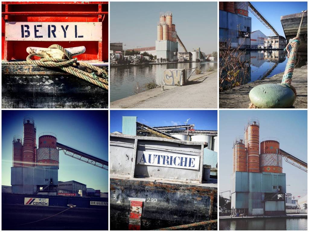 Cemex Bétons est une usine de béton située le long du canal Saint-Denis à Aubervilliers. Des barges naviguent quotidiennement pour transporter des matières premières vers l’usine, avec des noms curieux comme « Autriche » ou « Beryl », comme l’illustrent les photos ci-dessus. Ses silos sont réputés pour leurs arts graphiques et font partie de l’identité de la ville. Ils ont été conçus par un artiste renommé appelé Guaté Mao. La zone est également appréciée des promeneurs, des familles et des sportifs.