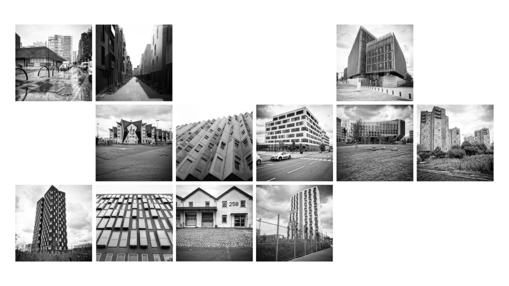Une série de photos que j’ai prises un matin d’été : la lumière était vive, ce qui m’a permis de photographier correctement les bâtiments de la ville.