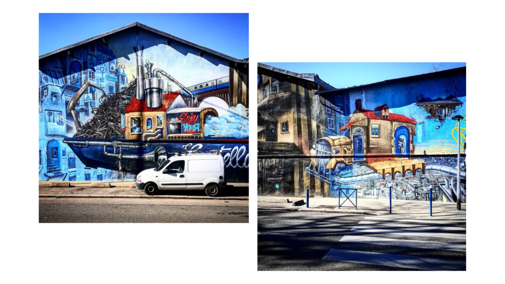 Since 2018, the city has organized the “Auber Graffiti Show” near old warehouses every year. The pictures above were taken in 2022 and 2023. For a week-end, artists are allowed to produce frescoes on the large and empty walls of the area. It’s also the opportunity for local inhabitants to gather and meet the artists.