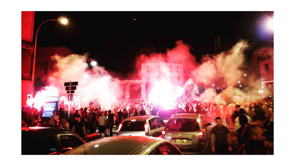 It was late when I took this picture. It was during the African Cup of Nations when Algeria won the 2019 event. People spontaneously gathered at the well-known crossroad called the “Quatre-Chemins”.