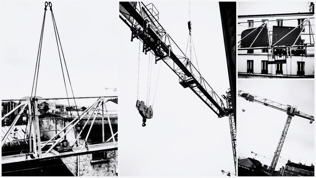 Quand je vivais à Aubervilliers, la ville était en pleine reconstruction. Des grues poussaient partout. J’ai pris ces photos quand l’une d’elles a été installée à quelques centaines de mètres de mon appartement.