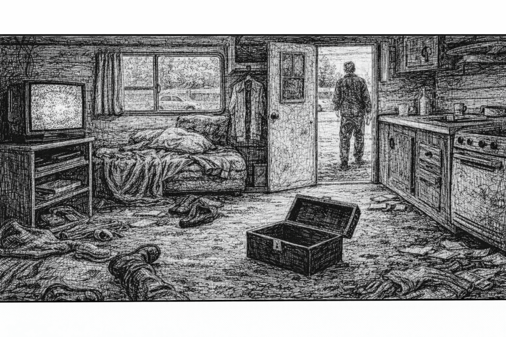 Samuel and Mary were happy. Jonathan was well and kind. But they had problems too. Especially with what they call the “black box” deeply hidden in the mobile-home. Samuel and Mary were in extreme difficulty in the past. Two years in jail for Samuel in 1978. Mary was arrested as a prostitute and substance user in 1977, 1978 and again in 1979. They met through a rehab program and made a promise to never speak again of the past, and to never speak of “the Figure” — a deep concern for them psychologically in the small black box.